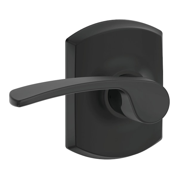 Grade 2 Passage Latch, Merano Lever, Greenwich Rose, Black Finish