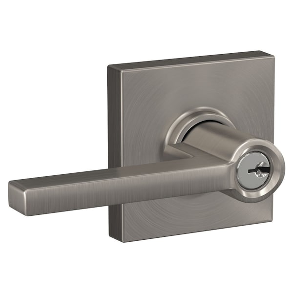 Grade 2 Entry Lock, Latitude Lever, Conventional Cylinder, Keyed Different, Satin Nickel Plated Clear Coated Finish, Non-Handed