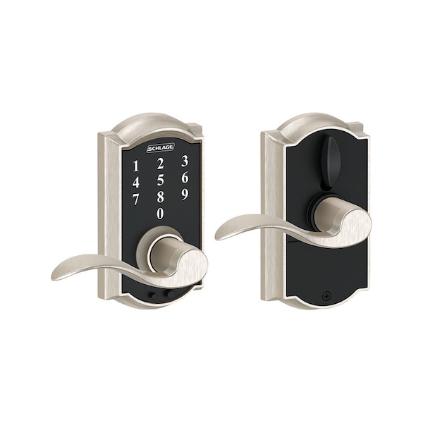 With the Schlage touch keyless touchscreen accent lever with Camelot trim in satin nickel, there's no key to lose, no re-keying or cutting new keys - no keys at all, thanks to the cylinder-free design. You can finally go for a run or take the dog for a walk without juggling keys or stuffing them in your sock. All in a slim profile and stylish trim that pairs perfectly with interior hardware. The accent lever is widely popular for its elegant wave-like design that effortlessly matches a room's style without overshadowing it, while the Camelot trim's scalloped architectural details make any room charming and approachable, especially when wrapped in the versatile satin nickel finish. Plus, it's been designed and tested with strength and durability in mind.