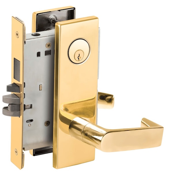 Storeroom Mortise Lock with Deadbolt, 06N Design, Bright Brass