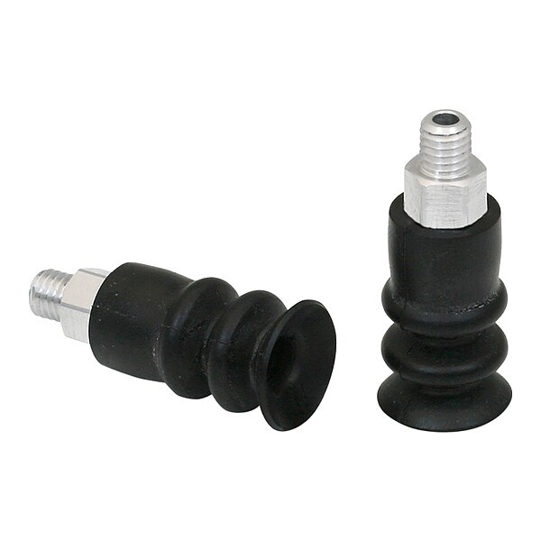 Item Vacuum Pad Assembly, Adapter Material Aluminum, Durometer 55 A, Maximum Vacuum Pressure -0.6 bar, Number of Folds 2.5, Outside Diameter 12 mm, Overall Height 31 mm, Pad Color Black, Pad Diameter 13 mm, Hardness 55 Shore A, Pad Height 26 mm, Pad Material NBR, Pad Type Multi-Bellows, Port Size M5, Port Type Metric, Series FSG, Standards DIN ISO 3302-1 M3, Stroke 7 mm, Weight 2.2 g