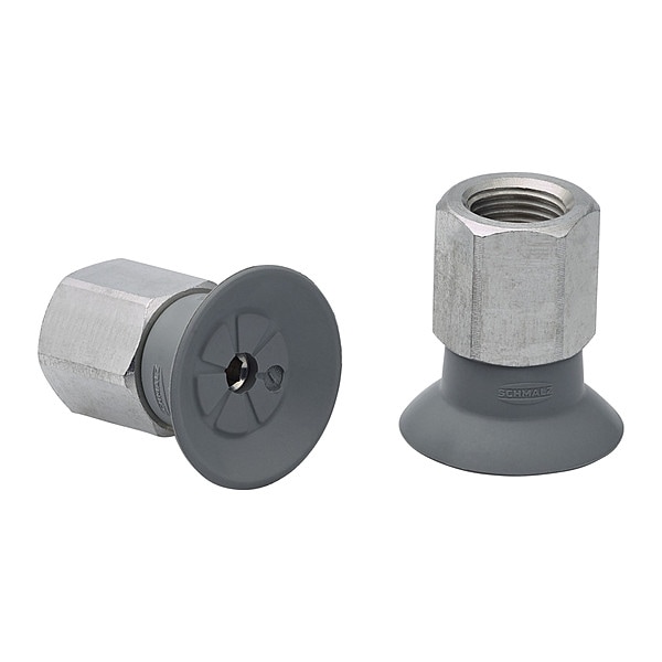 Item Vacuum Pad Assembly, Durometer 55 A, Maximum Vacuum Pressure -0.6 bar, Number of Folds 0, Outside Diameter 15 mm, Overall Height 24.5 mm, Pad Color Gray, Pad Diameter 16.8 mm, Hardness 55 Shore A, Pad Height 19 mm, Pad Material NBR, Pad Type Flat, Port Size M5, Port Type Metric, Series SUF, Stroke 1.5 mm, Weight 2.1 g