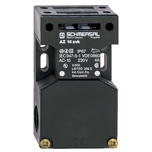 Safety switch with separate actuator, 3 cable entries M 16 x 1.5, LED version available, Large wiring compartment, Thermoplastic enclosure, Double-insulated, Universal coding, Long life, High level of contact reliability with low voltages and currents, Insensitive to soiling, Slotted holes for adjustment, circular holes for location