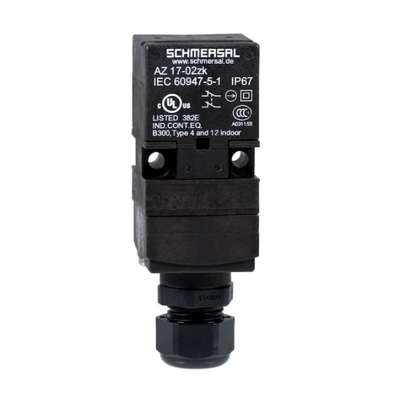 Safety switch with separate actuator, AZ 17-02ZRK, cable gland M16, Thermoplastic enclosure, Double-insulated, Long life, small body, Universal coding, High level of contact reliability with low voltages and currents, Insensitive to soiling, 8 actuating planes