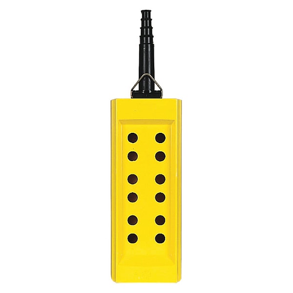 Pendant Enclosure, Number of Holes 12, Cable Entry 0.39 in to 0.87 in, Color Yellow, Hole Size 40 mm, Material Plastic, Height 4.25 in, Width 6.38 in, Depth 25.98 in, Includes Cap Sleeve, Standards CSA, EN/IEC, IP65, RoHS