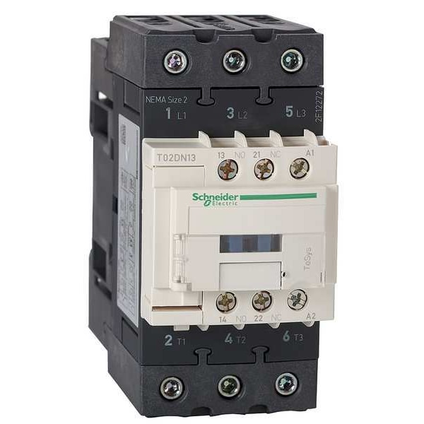 NEMA Magnetic Contactor, Auxiliary Contact Form 1NO/1NC, NEMA Enclosure Rating No Enclosure, NEMA Size 2, Coil Voltage 24V DC, Number of Poles 3, Full Load Current - Inductive 45 A, Reversing Capability Non-Reversing, Overall Height 5.47 in, Overall Width 2.16 in, Terminal Connection Type Screw Clamp Terminals, Series TeSys N, Number of Auxillary Contacts 2, Contactor Style NEMA, Horsepower @ Three Phase - 240V AC 15 hp, Horsepower @ Three Phase - 480V AC 25 hp, Phase Three