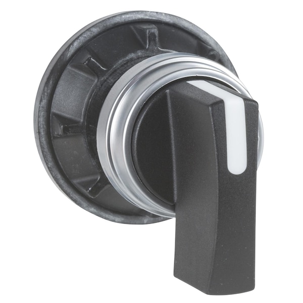 Cam switch operating head, Harmony K1, K2, mounting hole 22mm, plastic head with bezel 29mm, metallic legend, black handle