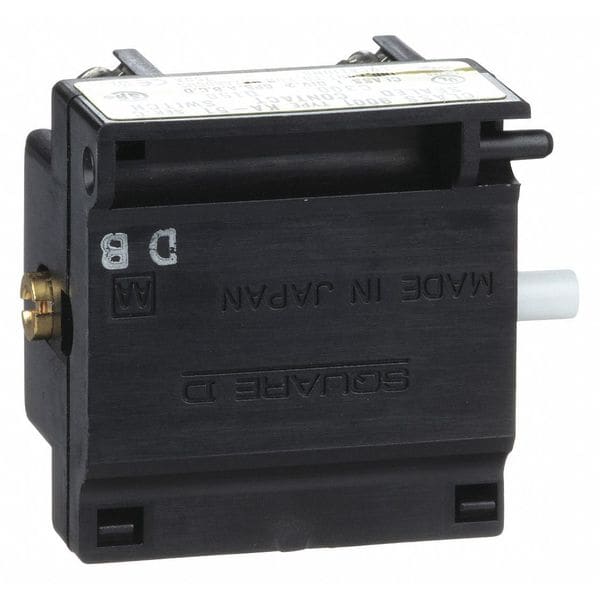 Contact Block, Contact Form 1NO/1NC, Contact Rating 3A @ 240V AC, For Use With Schneider 9001K Series 30mm Operators, Action Momentary, 30 mm, Application Finger Safe Operator, NEMA Contact Rating Designation C300/Q150, Color Black, Terminal Connection Screw/Clamp, Standards UL 508, Safety Rating Class II Conforming to IEC 61140