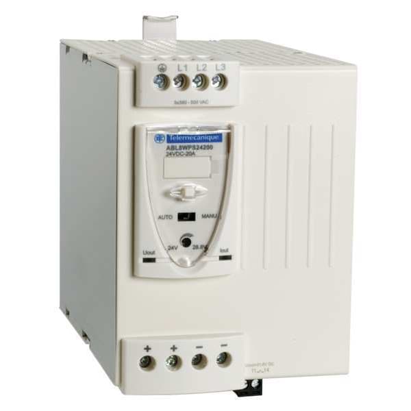 DC Power Supply, Input Voltage 380 to 500V AC, Output Voltage 24V DC, Power Rating 960W, Output Amps 40, Mounting DIN Rail, Switching, Case Material Plastic Case, Height 5.63 in, Width 6.1 in, Depth 6.5 in, Series ABL, Hz 50 to 60 Hz, Phase - Electrical Three, Peak Amps 1.5, IP Rating IP20, Output Noise Less Than or Equal to 200mV, Hold Up Time Greater Than 18 msec, Status Indicator Green/Orange/Red LED, Green/Red LED