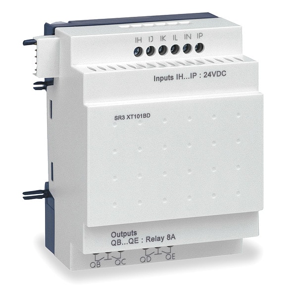 Discrete Input/Output Module, Number of Inputs 6, For Use With SR3 Logic Relays, Number of Outputs 4, Power Required 24V DC, Features Simple Programming, Product Type Extension Module, Current Rating 4 mA, Mounting Style DIN Rail, Wire Connection Type Screw Clamp