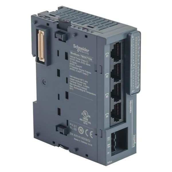 3 x 2.5 mm² removable screw terminal block pitch 5.08 mm for connecting the 24 V DC power supply || 4 RJ45 connectors for connecting the motor starters