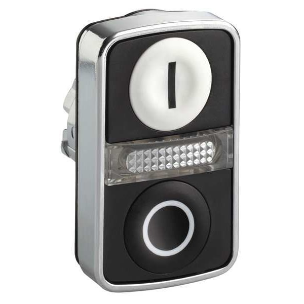 Multihead Operator, 22 mm, Momentary/Momentary/Momentary, Type of Operator (2) Flush Buttons, Head Material Metal, Bezel Material Metal, Color White/Black, NEMA Rating 13, 4X, IP Rating IP66, IP67, IP69, IP69K, Legend I, O, Legend/Background Color Black/White, White/Black
