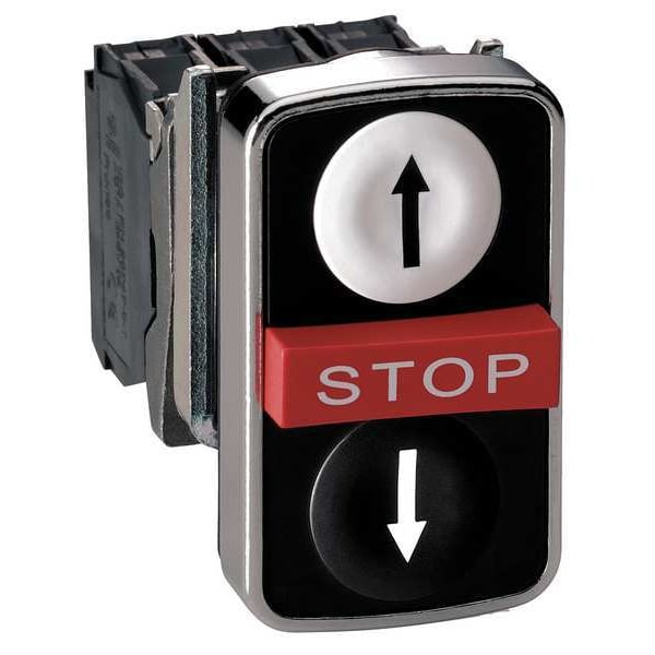 Multihead Operator, 22 mm, Momentary/Momentary/Momentary, Type of Operator (1) Extended Button, (2) Flush Buttons, Head Material Metal, Bezel Material Metal, Color White/Black, NEMA Rating 13, 4X, IP Rating IP66, IP67, IP69, IP69K, Legend Stop, Legend/Background Color Black/White, White/Black, White/Red