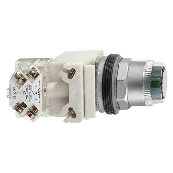 Illuminated Push Button, 30 mm, Momentary Action, Round Guarded Button Type of Operator, Head Material Plastic, Contact Form SPDT, Bezel Chrome Plated Metal, Color Green, Contact Rating 10A @ 600V AC, NEMA Contact Rating Designation A600/Q600, Number of Operators 1, NEMA Rating 1, 12, 13, 2, 3, 3R, 4, 6, IP Rating IP66, Legend Not Applicable, Standards CE, CSA LR25490 Class 3211 03, REACH, RoHS, UL E42259 CCN NKCR, WEEE, Terminal Connection Screw Clamp