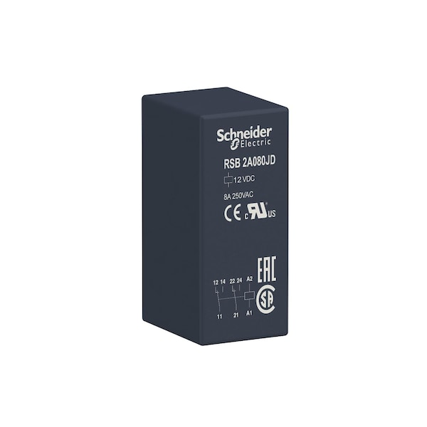 Interface plug-in relay, 8 A, 2 CO, 12 V, 12V DC Coil Volts, 2 C/O