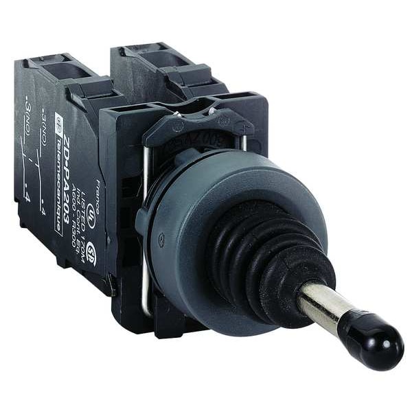 Joystick Operator, 22 mm, Number of Directions 4, 1NO Contact Form, Contact Rating 10A @ 600V AC, NEMA Contact Rating Designation R300, Joystick Material Plastic, Bezel Plastic, Non-Latching, Vertical and Horizontal Direction of Operation, Action Momentary, NEMA Rating 13, 4X, IP Rating IP66, Standards China RoHS, EU RoHS, REACH, WEEE
