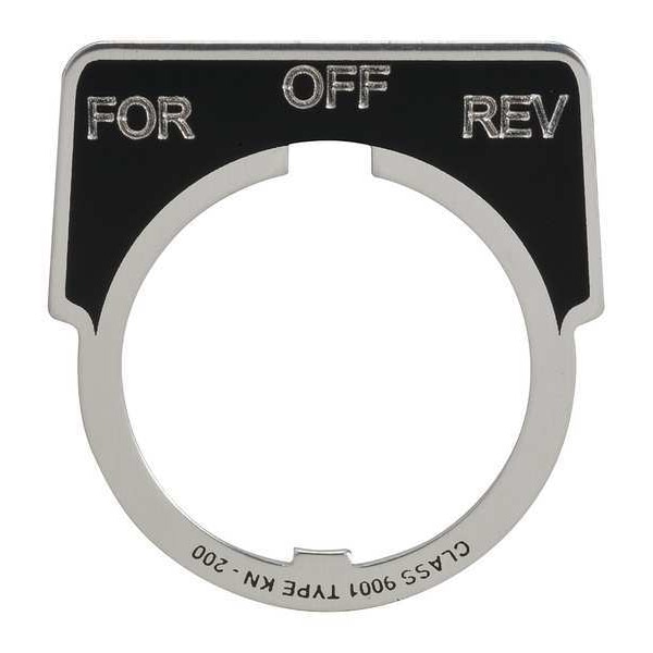 Legend Plate, Half-Round, Legend For-Off-Rev, For Use With 30mm 9001K Operators, Legend/Background Color Black, Material Aluminum, Height 1.9 in, Width 2.3 in