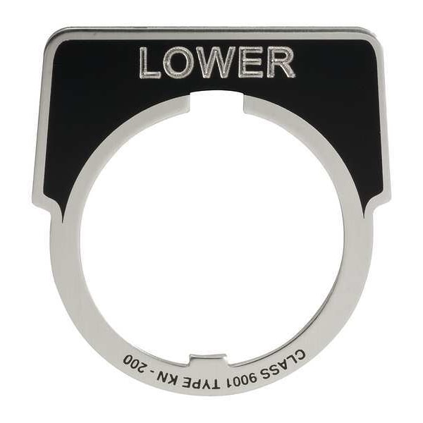 Legend Plate, Half-Round, Legend Lower, For Use With 30mm 9001K Operators, Legend/Background Color Black, Material Aluminum, Height 1.9 in, Width 2.3 in