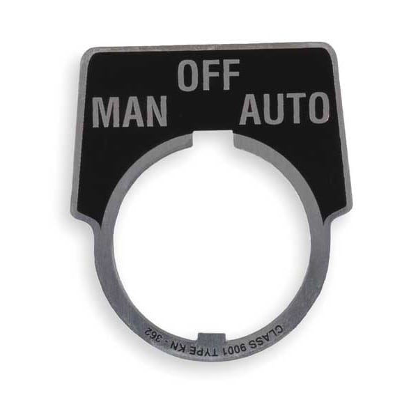 Legend Plate, Half-Round, Legend Man-Off-Auto, For Use With 30mm 9001K Operators, Legend/Background Color Black, Material Aluminum, Height 1.9 in, Width 2.3 in