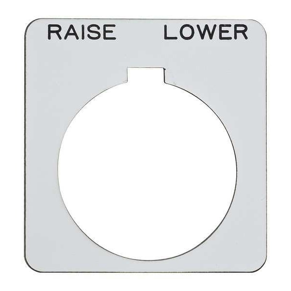 Legend Plate, Square, Legend Raise-Lower, For Use With 30mm 9001K and 9001SK Operators, Legend/Background Color White/Black, Material Plastic, Height 1.7 in, Width 1.7 in