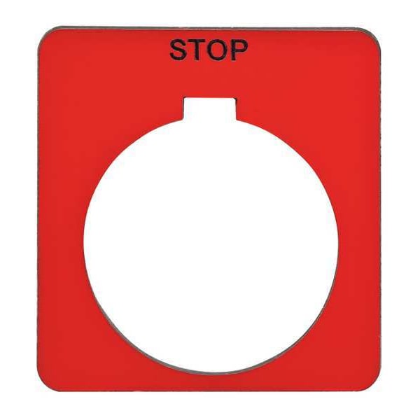 Legend Plate, Square, Legend Stop, For Use With 30mm 9001K and 9001SK Operators, Legend/Background Color Red/Black, Material Plastic, Height 1.7 in, Width 1.7 in