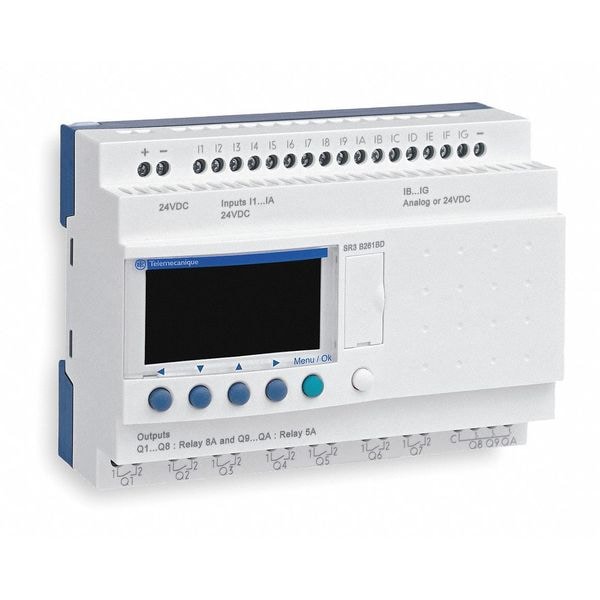Compact Smart Relay, Input Voltage 100 to 240V AC, Output Type (8) Relay, 8 A Amps, Number of Inputs 12, Number of Outputs 8, Counters 16, Timers 16, Yes Clock, LCD Display, Depth 2.34 in, Height 4.24 in, Width 4.91 in
