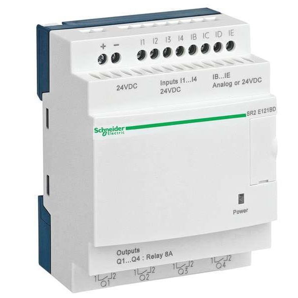 Compact Smart Relay, Input Voltage 24V AC/DC, Output Type (4) Relay, 8 A Amps, Number of Inputs 8, Number of Outputs 4, Counters 16, Timers 16, No Clock, 7 Segment LED Display, Depth 2.34 in, Height 4.24 in, Width 2.8 in
