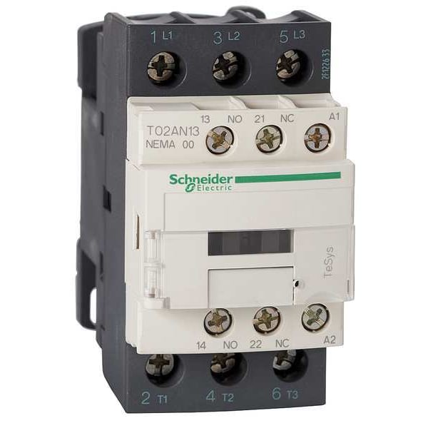 NEMA Magnetic Contactor, Auxiliary Contact Form 1NO/1NC, NEMA Enclosure Rating No Enclosure, NEMA Size 00, Coil Voltage 24V AC, Number of Poles 3, Full Load Current - Inductive 9 A, Reversing Capability Non-Reversing, Overall Height 3.34 in, Overall Width 1.76 in, Terminal Connection Type Screw Clamp Terminals, Series TeSys N, Number of Auxillary Contacts 2, Contactor Style NEMA, Horsepower @ Three Phase - 240V AC 1 1/2 hp, Horsepower @ Three Phase - 480V AC 2 hp, Phase Three