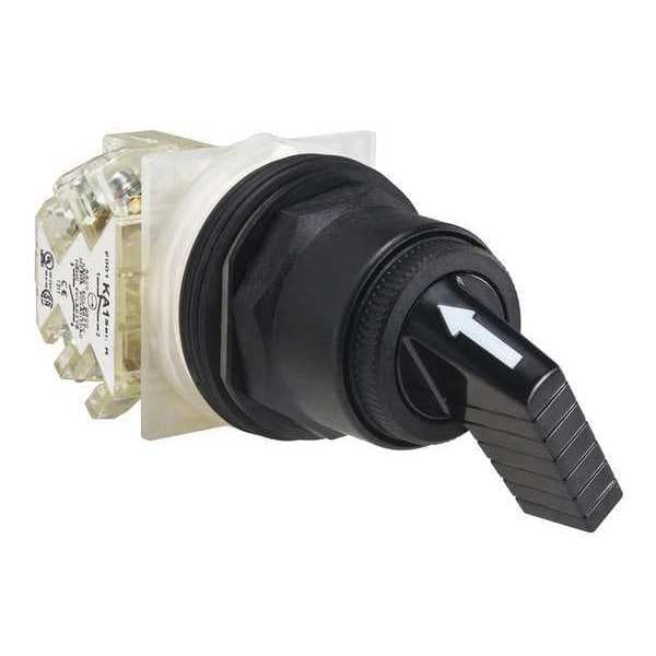 Selector Switch, 30 mm, 2 Position, Maintained/Maintained Action, SPDT Contact Form, Type of Operator Extended Lever, Color Black, No Key Key Removal, Operator Head Material Polycarbonate, Basic Material Plastic, Bezel Material Plastic, Bezel Color Chrome, Contact Rating 10A @ 600V AC, NEMA Contact Rating Designation A600/Q600, NEMA Rating 12, 13, 3, 3R, 4, 4X, IP Rating IP66, Cam E, Switch Operation @ Position A OX, Switch Operation @ Position B XO