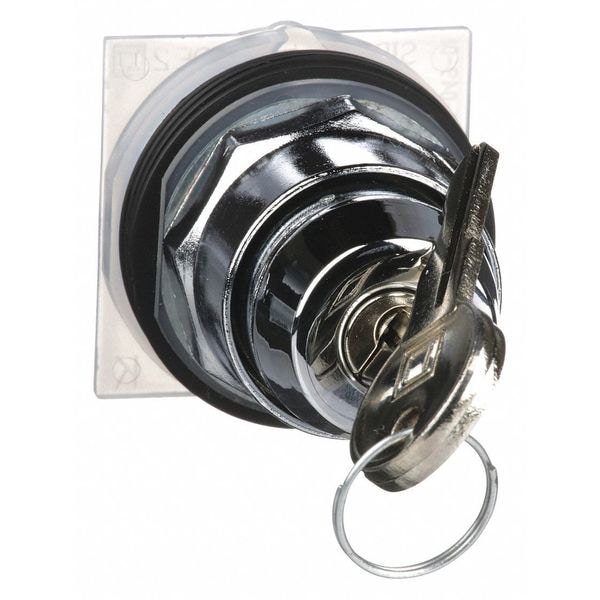Keyed Selector Switch, 30 mm, 2 Position, Maintained/Maintained Action, Keyed Type of Operator, Operator Color Chrome, Key Removal Left/Right, Operator Head Material Metal, Bezel Material Metal, Bezel Color Chrome, NEMA Rating 12, 13, 3, 3R, 4, IP Rating IP66, Cam E, Standards CSA C22.2 No.14, EN/IEC 60947-1, EN/IEC 60947-5-1, EN/IEC 60947-5-4, JIS C4520, JIS C852, UL 508, Key Number E10, Includes Key