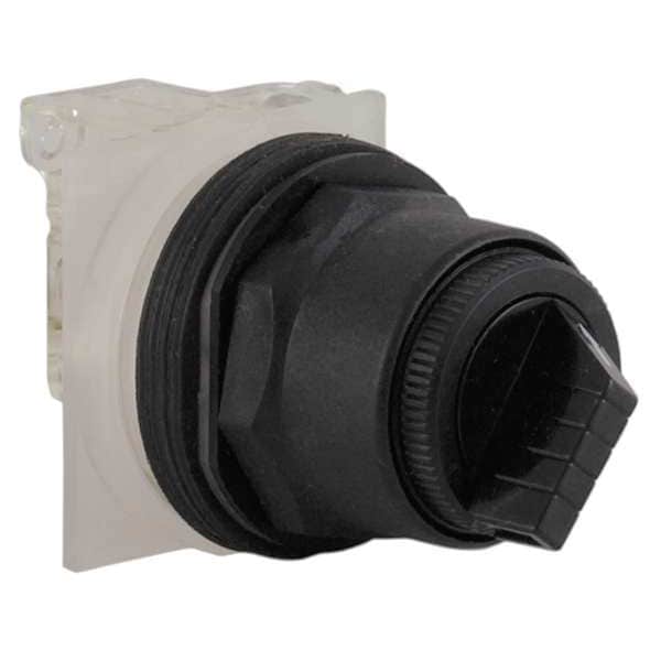 Selector Switch, 30 mm, 2 Position, Maintained/Maintained Action, SPDT Contact Form, Type of Operator Lever, Color Black, No Key Key Removal, Operator Head Material Polycarbonate, Basic Material Plastic, Bezel Material Plastic, Bezel Color Chrome, Contact Rating 10A @ 600V AC, NEMA Contact Rating Designation A600/Q600, NEMA Rating 12, 13, 3, 3R, 4, 4X, IP Rating IP66, Cam E, Switch Operation @ Position A OX, Switch Operation @ Position B XO, Switch Operation @ Position C No Third Position