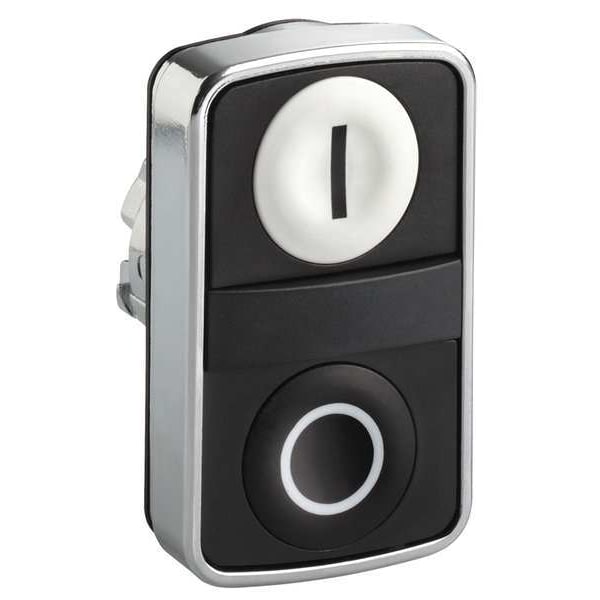 Multihead Operator, 22 mm, Momentary/Momentary, Type of Operator (2) Flush Buttons, Head Material Metal, Bezel Material Metal, Color White/Black, NEMA Rating 13, 4X, IP Rating IP66, IP67, IP69, IP69K, Legend I, O, Legend/Background Color Black/White, White/Black