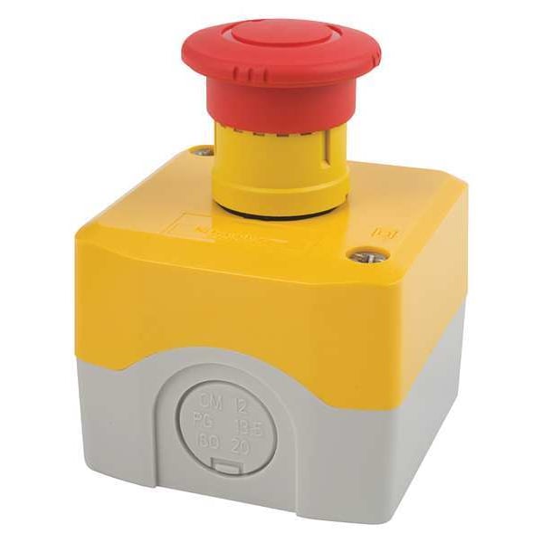 Control Station, Number of Operators 1, Number of Pilot Lights 0, Size 22 mm, Legend Emergency Stop, Type of Operator 40mm Mushroom Head, Action Maintained, Operator Color Red, Contact Form 2NC, Mechanical Interlock No, NEMA Rating 1, 12, 13, 2, 3, 4, 4X, Contact Rating 10A @ 600V AC, 2.5A @ 24V DC, NEMA Contact Rating Designation A600/Q600, IP Rating IP66, IP67, IP69, IP69K, Mounting Wall, Hub ISO M20, Height 2.67 in, Width 2.67 in, Depth 3.6 in, Head Material Plastic
