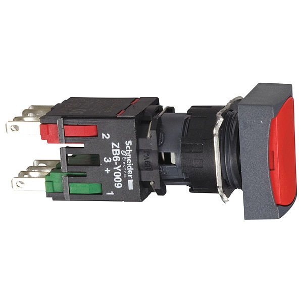 Flush Push Button Operator, 16 mm, Momentary Action, Rectangular Flush Button Type of Operator, Head Material Plastic, Contact Form 1NO/1NC, Bezel Plastic, Color Red, Contact Rating 0.1A @ 250V DC, 0.22A @ 125V DC, 1.5A @ 240V AC, 3A @ 120V AC, Number of Operators 1, NEMA Rating 13, 4, 4X, IP Rating IP65, Legend Not Applicable, Standards CCC, CSA, CSA C22.2 No.14, EN/IEC 60947-1, EN/IEC 60947-5-1, EN/IEC 60947-5-5, GOST, JIS C4520, JIS C852, REACH, RoHS, UL 508, UL Listed, WEEE