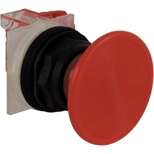 Mushroom Head Push Button, 30 mm, Momentary Action, 57mm Mushroom Head Type of Operator, Head Material Plastic, Contact Form 1NC, Bezel Corrosion Resistant Thermoplastic, Color Red, Contact Rating 10A @ 600V AC, NEMA Contact Rating Designation A600/Q600, Number of Operators 1, NEMA Rating 1, 12, 13, 2, 3, 3R, 4, 4X, 6, IP Rating IP66, Legend Not Applicable, Standards CSA C22.2 No.14, EN/IEC 60947-1, EN/IEC 60947-5-1, EN/IEC 60947-5-4, JIS C4520, JIS C852, REACH, RoHS, UL 508, WEEE