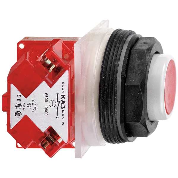 Extended Push Button Operator, 30 mm, Momentary Action, Extended Button Type of Operator, Head Material Plastic, Contact Form 1NC, Bezel Corrosion Resistant Thermoplastic, Color Red, Contact Rating 10A @ 600V AC, NEMA Contact Rating Designation A600/Q600, Number of Operators 1, NEMA Rating 1, 12, 13, 2, 3, 3R, 4, 4X, 6, IP Rating IP66, Legend Not Applicable, Standards CSA C22.2 No.14, EN/IEC 60947-1, EN/IEC 60947-5-1, EN/IEC 60947-5-4, JIS C4520, JIS C852, REACH, RoHS, UL 508, WEEE
