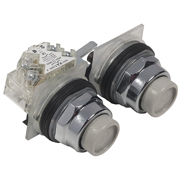 Flush Push Button Operator, 30 mm, Momentary/Momentary Action, Flush Guarded Button Type of Operator, Head Material Metal, Contact Form SPDT, Bezel Chrome Plated Metal, Color Universal, Contact Rating 10A @ 600V AC, Number of Operators 2, NEMA Rating 1, 12, 13, 2, 3, 3R, 4, 6, IP Rating IP66, Legend Not Applicable, Legend/Background Color No Legend, Standards CE, CSA LR25490 Class 3211 03, REACH, RoHS, UL E42259 CCN NKCR, WEEE, Terminal Connection Screw Clamp, Features Mercury Free