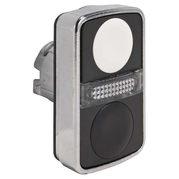 Multihead Operator, 22 mm, Momentary/Momentary/Momentary, Type of Operator (2) Flush Buttons, Head Material Metal, Bezel Material Metal, Color White/Black, NEMA Rating 13, 4X, IP Rating IP66, Legend Not Applicable, Legend/Background Color White/Green, White/Red