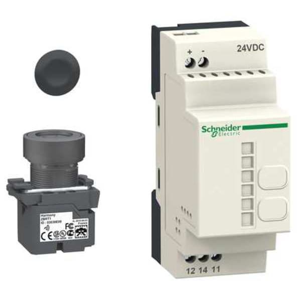 Wireless Push Button Kit, Color Universal, Voltage 24 to 240V AC/DC, Action Momentary, Material Metal, NEMA Rating 12, IP Rating IP30, Number of Operators 1, Size 22 mm, Type of Operator Flush Push Button, Height 3.58 in, Width 4.02 in, Length 4.21 in, Legend Markings No Legend, Standards CSA C22.2 No.14, EN/IEC 60947-1, EN/IEC 60947-5-1, UL 508, Includes (1) Set Multiple Color Caps, Programmable Receiver with (2) Relay Outputs
