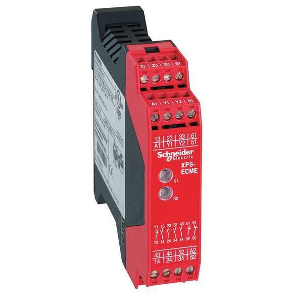 Safety Relay Extension Module, Delay Time No Delay, Electrical Connection Captive Screw, IP Rating IP20, Input Voltage 24V AC/DC, Mounting Style DIN Rail, Number of Inputs 2, Number of Pins 16, Output Switch Configuration (2) SPST-NC Aux. Relay, (4) SPST-NO Instantaneous, Response Time 20 msec, Standards CE, CSA, UL, Contact Rating (AC) 5A @ 300V, Contact Rating (DC) 1.50A @ 24V, For Use With All XPS Series Relays, Body Depth 4.49 in, Body Height 3.9 in, Body Width 0.89 in, Overall Depth 3.9 in