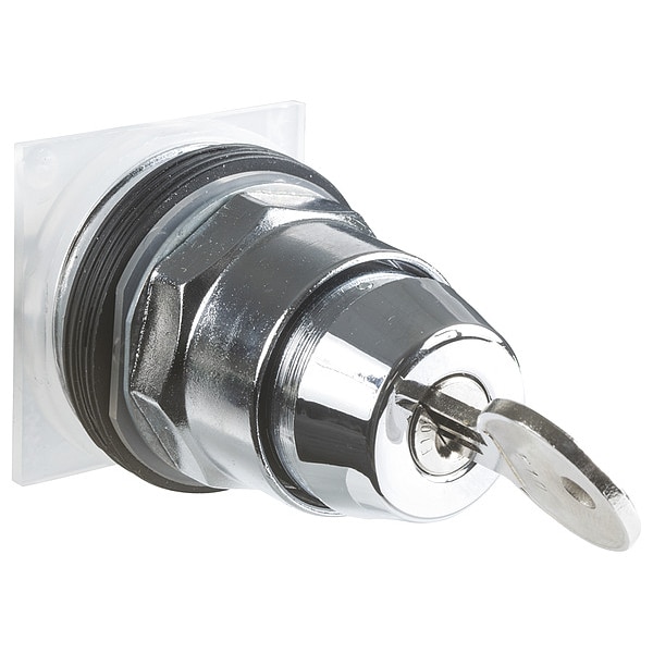 Selector Switch, 30 mm, 2 Position, Maintained/Maintained Action, SPDT Contact Form, Type of Operator Keyed, Color Black, Operator Head Material Brass, Basic Material Metal, Bezel Material Metal, Bezel Color Chrome, NEMA Rating 4, IP Rating IP66, Cam E, Switch Operation @ Position C No Third Position, Switch Operation @ Position D No Fourth Position, Standards CE, CSA LR24590 Class 3211 03, UL E42259 CCN NKCR