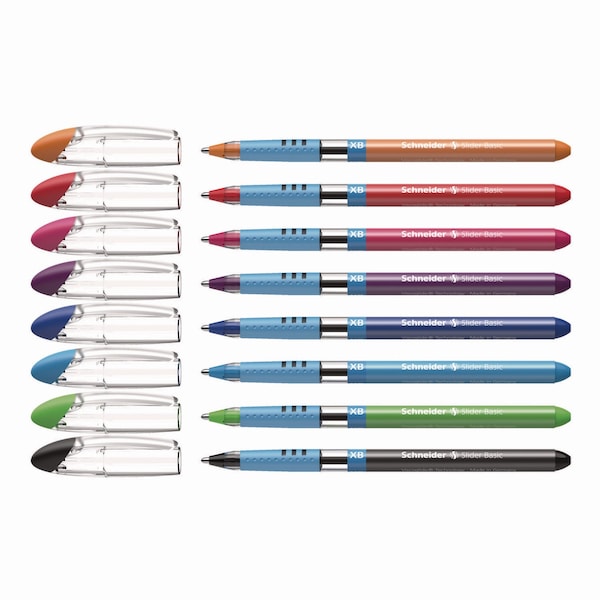 The Slider Basic Ballpoint Pen features Viscoglide® Advanced Ink Technology for an extraordinarily smooth writing experience. Ink dries quickly and resists smudging, even when highlighted. Rubberized grip reduces writing fatigue during long writing sessions. Transparent cap with clip fits neatly on the end of the barrel. Produced CO2 neutrally.