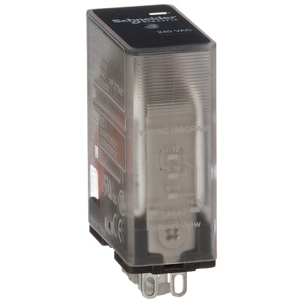 General Purpose Relay, Base Shape Square, Coil Voltage 240V AC, Contact Form SPDT, Current Rating 15 A, Electrical Connection Faston Terminal, Number of Pins 5, Status Indicator Mechanical Flag, Contact Rating (AC) 10 A @ 151/277V, 15 A @ 120 to 277/120/150/250V (NO), 7.55 A @ 250V (NC), Contact Rating (DC) 15 A @ 28V (NO), 7.55 A @ 28V (NC), Horsepower @ 120V AC 1/2 hp, Horsepower @ 240V AC 1 hp, Mounting Style Socket, Push-To-Test Method No Button, Body Depth 1.39 in, Body Height 1.07 in