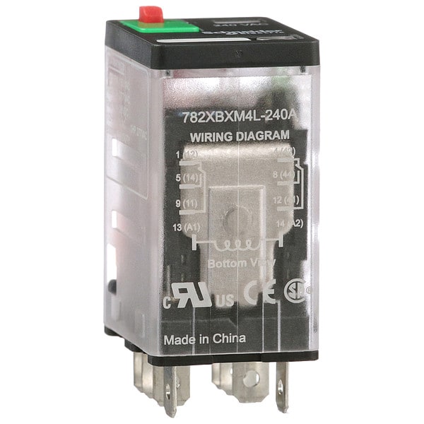 General Purpose Relay, Base Shape Square, Coil Voltage 240V AC, Contact Form DPDT, Current Rating 15 A, Electrical Connection Faston Terminal, Flat Pin Width 0.187 in, Number of Pins 8, Status Indicator LED Indicator, Mechanical Flag, Contact Rating (AC) 10 A @ 151/277V, 15 A @ 120 to 277/120/150/250V (NO), 7.55 A @ 250V (NC), Contact Rating (DC) 15 A @ 28V (NO), 7.55 A @ 28V (NC), Horsepower @ 120V AC 1/2 hp, Horsepower @ 240V AC 1 hp, Mounting Style Socket, Push-To-Test Method Lockable