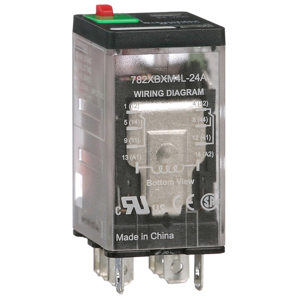 The SE Relays 782 series, plug-in general purpose relay offers robust and historically proven square base mounting relay platform that provides excellent structural support with clear cover with LED indication and locking push button. Contacts rated as 15A resistive at 277VAC, motor 1/2hp at 120VAC, 1hp at 277VAC with nominal coil voltage 24VAC , makes relay to be an ideal choice for automation panels and controls. Gold flashed contact DPDT configuration reduces oxidation and increases shelf life, gives simultaneous control of separate circuits. Socket-mounting option, blade terminal style simplified installation and maintenance and using of protection modules, hold-down clips, and other accessories. Mechanical standard flag indicator displays the relay status during testing or operation.