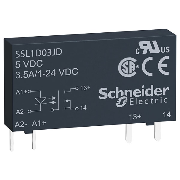 Solid State Relay, Coil Voltage 3 to 12V DC, Contact Form SPST-NO, Current Rating 3.5 A, Electrical Connection Pins, Mounting Style Socket, Body Depth 0.59 in, Body Height 1.1 in, Body Width 0.2 in, Input Voltage 3 to 12V DC, Maximum Operating Temperature 176 Degrees F, Maximum Switching Voltage 1V DC, Minimum Operating Temperature -4 Degrees F, Minimum Switching Voltage 3V DC