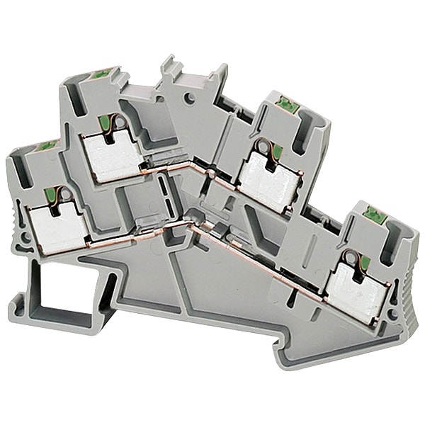 Terminal Block, Circuit Protection Type None, Connection Type Push-In, Current 20 A, For Minimum Wire Size 26 AWG, For Maximum Wire Size 12 AWG, Housing Color Gray, Maximum Voltage 600 V, Mounting Type DIN Rail, Number of Poles 2, Number of Tiers 2, For Conductor Material Not Applicable, For Conductor Type Not Applicable, For Fuse Diameter Not Applicable, For Fuse Length Not Applicable, Overall Depth 2.17 in, Overall Length 3.07 in, Overall Width 0.21 in, Standards CSA, cULus, EAC, GL, LR, VDE