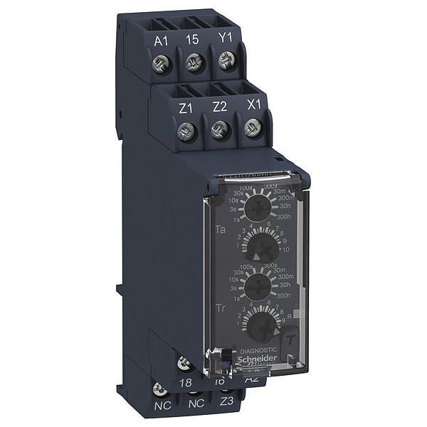 Time Delay Relay, Adjustment Method Diagnostic Button, Rotary Dip Switch, Base Shape Square, Coil Voltage 24 to 240V AC/DC, Contact Form SPDT, Contact Rating (AC) 8 A @ 250V, Contact Rating (DC) 8 A @ 24V, Current Rating 8 A, Number of Delay Functions 2, Delay Function On/Off Delay, Electrical Connection Screw Terminal, IP Rating IP20; IP40; IP50, Input Voltage 24 to 240V AC/DC, Minimum Time Setting 0.05 sec, Maximum Time Setting 300 hr, Number of Pins 6, Sealing Sealed, Mounting Style DIN Rail