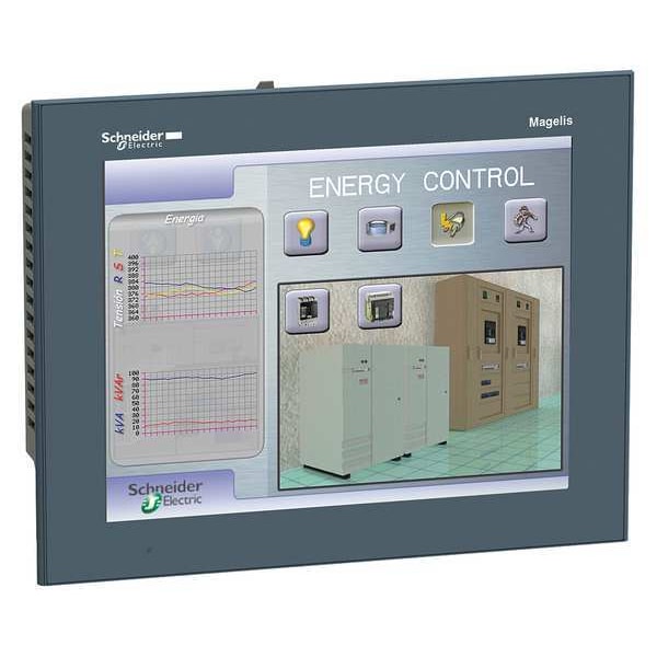 Touch Panel, TFT Color LCD, Voltage 24V DC, Display 640 x 480 Pixels, 96Mb Flash Memory, Port Type USB 2.0, USB-Mini B, Width 10.4 in, Height 5.6 in, Depth 11.8 in, For Use With Allen-Bradley, Omron and Other Automation, PLC and Drives, Schneider Electric Modicon, Siemens, Display of Text Messages, Graphic Objects and Synoptic Views, Control and Con�guration of Data