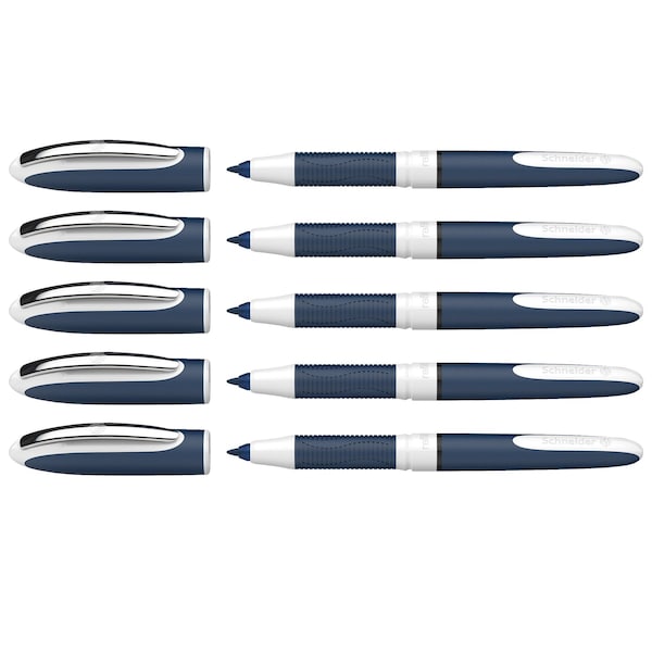 Rollerball can be refilled with the exchangeable One Change cartridge with Ultra-Smooth tip for the best writing experience. Line width approximately 0.6 mm, waterproof according to ink standard ISO 14145-2. The innovative Super-Flow-System guarantees consistent ink flow from start to finish. The cap-off ink does not run dry even if the cap is removed for 2-3 days and, besides this, is quick-drying and smudge proof. The One Change has a sturdy metal clip and a rubberized grip zone that provides a secure hold for relaxed writing. Sold as a pack of 5 pens.